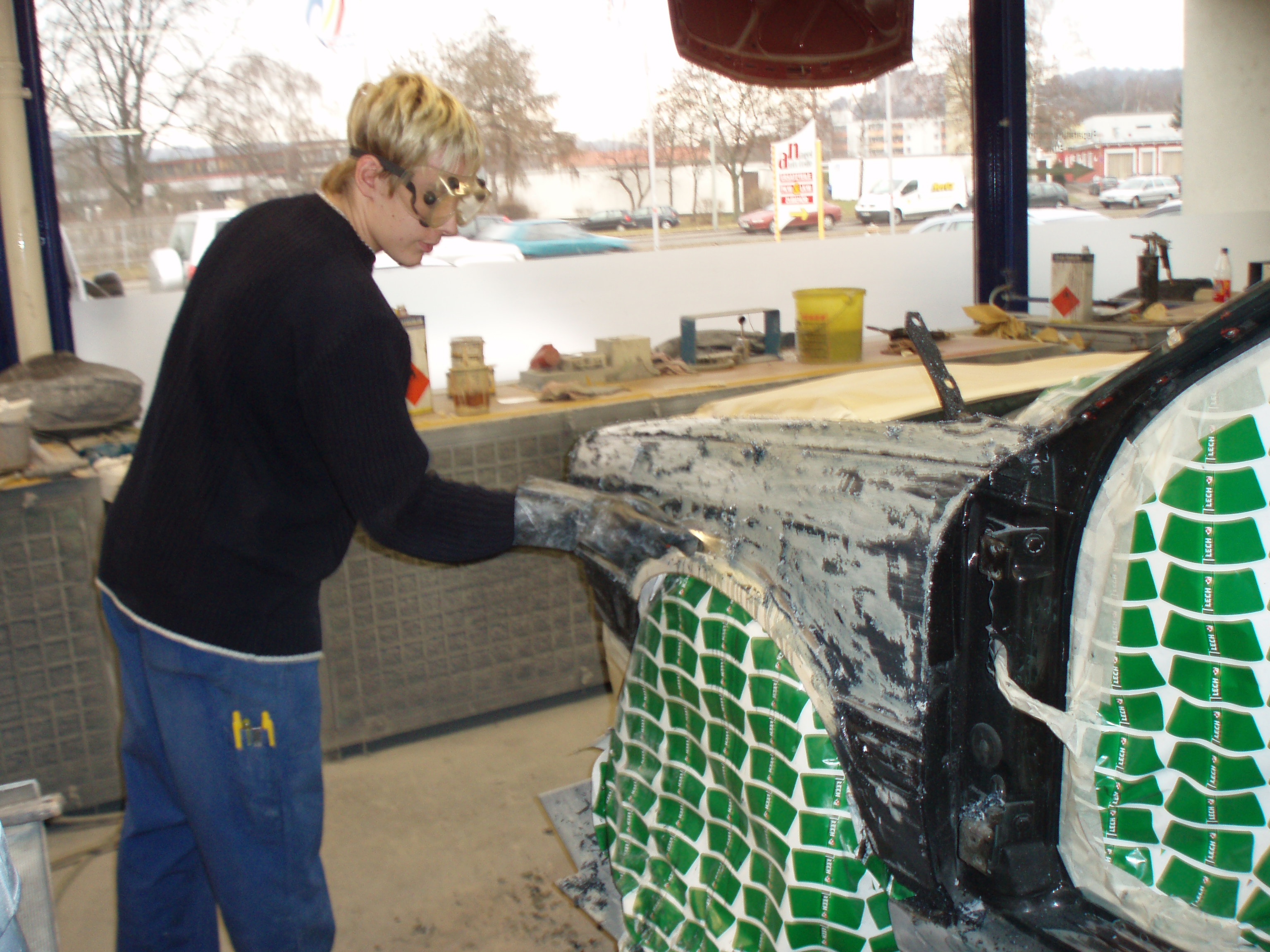 Neuer Lackaufbau für Show und Messe. Abbeizen des alten Lackes bis auf die Verzinkung und dann begann der Neuaufbau am Ende mit mehreren Schichten hochglänzenden Klarlack, wo zum Finish nochmal komplett nass geschliffen wurde und anschließend auf Hochglanz poliert; um wirklich kein bisschen Struktur mehr im Lack zuhaben.